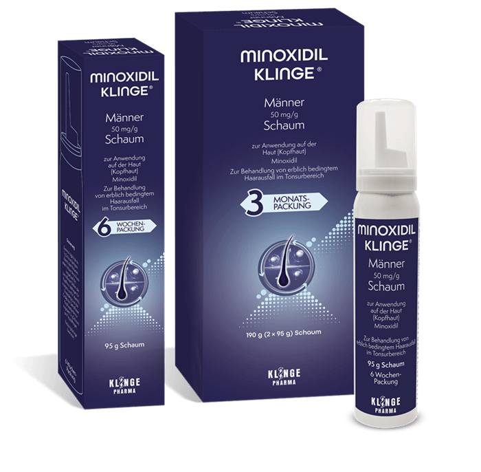 1 Fachinformation Minoxidil Klinge® Männer 50 mg/g Schaum zur Anwendung auf der Haut (Kopfhaut); Stand: August 2025.;